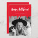 Send eerie Halloween greetings with this spooky photo card featuring “Happy Halloween” in bold white hand-lettering. The top of the design showcases speckled red “blood” dripping dramatically over your personalized photo for a creepy, horror-inspired effect. Add your name to the front for a custom touch. The back of the card displays a matching speckled red background, completing the chilling yet playful look.