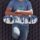 A skateboard deck featuring a dripping blue Cheetah pattern with lights and sparkles!
