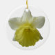 This ornament features a beautiful macro photo of a Daffodil showing this plant in beautiful detail following a rain shower. The flower is white and yellow and is covered in raindrops that sparkle in the light.