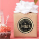 Central design features a stylized honey bee and the word "HONEY" printed in a gold font with drips. Personalize with your apiary name, address and honey description (raw, hand bottled, local, etc.) or include services offered (swarm retrieval, seminars, mated queens, etc.) Also include your honey net weight. Common honey net weight conversions: 8oz (227g), 12oz (340g), 16oz (454g), 32oz (907g), 5lb (2.27kg).