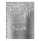 Dripping Silver Glitter Glam Name Notebook