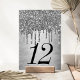 Dripping Silvery Glitter | Platinum Sweet Sixteen Table Number