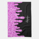 Dripping Sparkles Glitter Pink Black Monogram Kitchen Towel