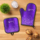 Dripping Violet Glitter Glam Name Oven Mitt & Pot Holder Set