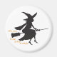 A silhouette of a witch on a broom with the words in orange "Oh yes, I can drive a stick."