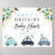 Drive By Baby Shower Welcome Sign Blue Floral