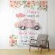 Drive By Floral Pink Drive Through Shower Backdrop with Vintage Decorated Pink Beetle Volkswagen Car and Floral Bouquet
