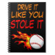 Flying baseball ball in flames and funny quote, Drive it like you stole it, funny sport notebook.