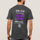 My 11 yo wore adult XL (5’7” 165#). The 8yo is small framed. She wore adult small and tied it in the back. Grandma wore adult large with long sleeve shirt underneath. Tall girl adult medium. Dark haired male adult large. Good quality dark Heather gray, Gildan brand shirt. -it was next up from basic choice and cost about $20 per shirt. Not too thick or thin. Washed and dried well, no major shrinkage. Not see-through. Can wear a bra under it fine. Screen print is just as shown and well done, front and back.
