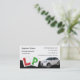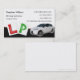 Driving instructor business cards with a picture of a car, and learner and a passed icons. Leather texture at the bottom