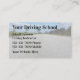 Driving school business cards with image of a empty roadway, and classic business card layout you can customize online. Best business cards for student driving lessons, driving schools, instructor, or teacher. Can be used by an independent driving instructor or class instruction.