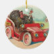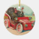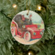 Ornament featuring vintage Thanksgiving postcard image of motoring turkeys.