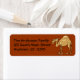 Cartoon of dromedary camel on the right edge of this whimsical lable design.