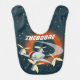 Vintage Sci-fi style drone racing themed baby bib with customisable text.