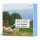 One sheep is asking another: Are you sure this is where you dropped your stitch? These humorous sheep are sure to bring a smile to your face. Great gift for you friends and family who love to knit.