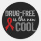Stand up for Drug Abuse Awareness with Drug-Free Is The New Cool t-shirts and gifts featuring grunge text and a red ribbon in the background.