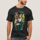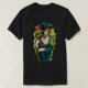 My 11 yo wore adult XL (5’7” 165#). The 8yo is small framed. She wore adult small and tied it in the back. Grandma wore adult large with long sleeve shirt underneath. Tall girl adult medium. Dark haired male adult large. Good quality dark Heather gray, Gildan brand shirt. -it was next up from basic choice and cost about $20 per shirt. Not too thick or thin. Washed and dried well, no major shrinkage. Not see-through. Can wear a bra under it fine. Screen print is just as shown and well done, front and back.