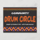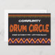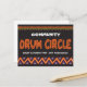 Drum Circle event postcard with tribal motif borders and colorful design on black. Edit the white text lines with your local information.