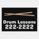 It has crossed drumsticks on the top. On the bottom, the sign says Drum Lessons, but you can change that in the template to personalize.