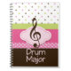 Cute polka dot music design with Drum Major quote has treble clef logo with pink polka dots and stripes design. Great thank you gift.
