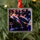 The artwork on this Metal Ornament is an original photograph by ZoeSPEAK of a drum set. The shiny black drums with their silvery rims reflect the colors of the lights in the studio, blues, reds and greens. Cymbals above the drums wait to be struck.
