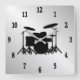 Drum Set Music Design Black Numbers Square Wall Clock