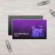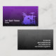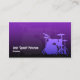 The silhouette of a drum kit appears in the bottom right corner over a violet and black gradient background. In the far background, the shadow of the same drum kit appears faintly. This design makes the perfect name card for drummers, percussionists or those involved in the music industry.