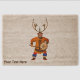 A northern shaman, wearing buckskin clothing and caribou (reindeer) antlers, performs a drumming ritual to communicate with spirits and travel between realms. The shaman is superimposed on an old brain tanned leather background image. Customize by adding your own text.