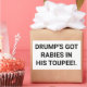 DRUMP'S GOT RABIES IN HIS TOUPEE. Comic Splash-Art sticker-design by Jeff Hankamer at Artjunkhaus
