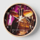 The original artwork on this Wall Clock is an original photograph by ZoeSPEAK of a drum set on stage at an outdoor jam. Guitars, drums, bass and harmonica joined for some blues and rock music as the sun set over the players. The optional text reads “The beat goes on!”, but it’s set for you to personalize, or delete if you prefer.