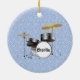 Drums Percussion Musical Notes Design Ceramic Ornament with customizable background color and text on front and back.