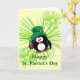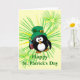 Custom Card with a drunk penguin holding a bottle of booze. Funny St. Patrick's Day. Designed by Janet Palaggi
