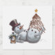 Drunk snowman with a bottle of whiskey. sparkling wine label