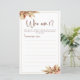 Embrace the rustic charm of autumn with our Dry Pampas Grass Who Am I Game Card, perfect for boho bridal showers and themed gatherings. Adorned with golden accents, this whimsical card captures the essence of bohemian elegance, adding a touch of natural beauty to any event. Let the soft, muted hues of pampas grass set the tone for a delightful guessing game that will enchant guests and create cherished memories.