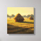 Vintage wall art of dry wheats stacked on a field after harvesting, golden yellow colors and visible oil painting brushstrokes