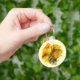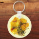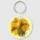 This lovely keychain features a still life composition of exquisite dried roses on a yellow background. The petals range in color from pale yellow through gold to a deep orange apricot.