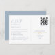 This chic, minimalist white and dusty blue dual-function wedding RSVP card brings a contemporary flair, featuring space for guest names and menu selections. Guests can RSVP effortlessly using the QR code or choose to send it back traditionally as a stamped postcard. Ideal for a stylish, modern wedding that balances convenience with timeless tradition.