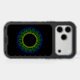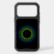 Two concentric rings of geometric spirals form a radiant circular pattern on a black case. The inner ring glows in yellow-green, while the outer ring shines in blue, creating a balanced contrast of color and symmetry. Dual Spiral Key blends modern geometry with timeless design—ideal for fans of intricate, minimal art.