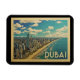 Dubai design in Vintage Travel style featuring a coastal scene with the beach and skyline of Dubai.