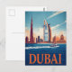 Dubai Marina Skyline & Boat Retro Postcard