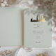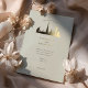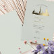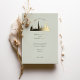This sophisticated wedding invitation features a stunning gold foil silhouette of the iconic Dubai skyline, set against a soft sage green background. The luxurious design blends modern elegance with minimalist charm, making it an ideal choice for destination weddings, upscale celebrations, and contemporary wedding themes.