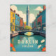 Dublin Ireland Retro Travel Art Floral Tower River Postcard