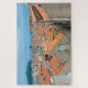 Painting of red rooftops and blue sea from Dubrovnik city wall in Dubrovnik, Croatia. View from above of old town center.