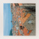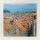 Painting of red rooftops and blue sea from Dubrovnik city wall in Dubrovnik, Croatia. View from above of old town center.