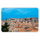 Painting of red rooftops and blue sea from Dubrovnik city wall, Dubrovnik, Croatia. View from above of old town center.