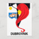 Redhead girl is looking at the old Dubrovnik fortress. Vintage travel postcard