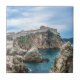 Painting of the fortress walls, rocky coast and blue sea in Dubrovnik, Croatia. Stunning view of Dubrovnik city walls and Dubrovnik old town.