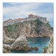 Painting of the fortress walls, rocky coast and blue sea in Dubrovnik, Croatia. Stunning view of Dubrovnik city walls and Dubrovnik old town.