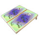 Natural Wood Cornhole Set, Yellow and Purple bags