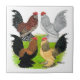 The mille fleur, self blue, brown red and buff Columbian roosters shown here are but a sampling of the lovely colors in which this pretty little bantam chickens are bred.